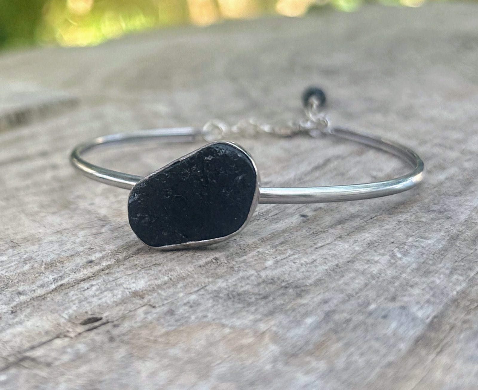 Ασημένια βέργα 925 με καστόνι μαύρης τουρμαλίνης