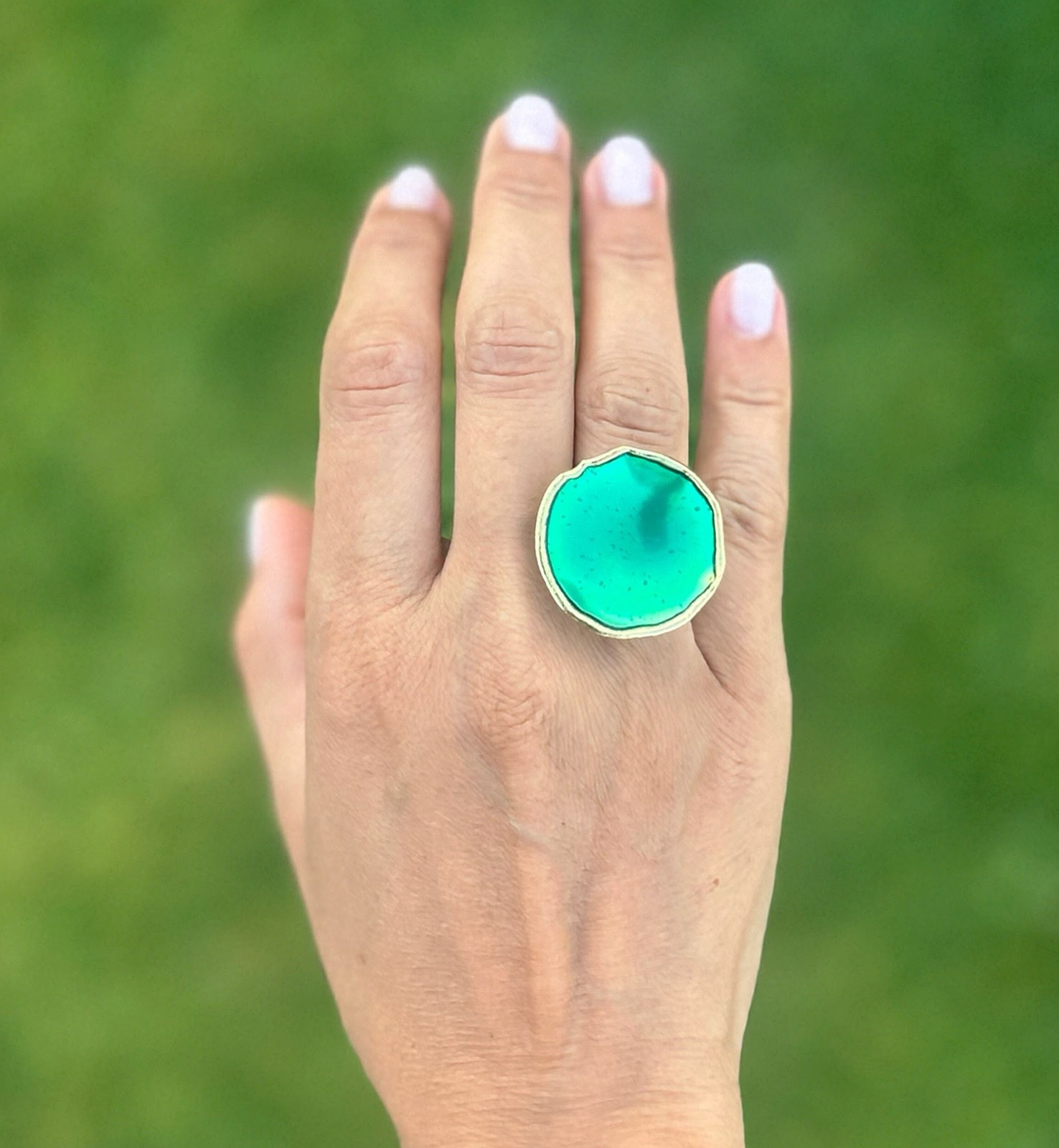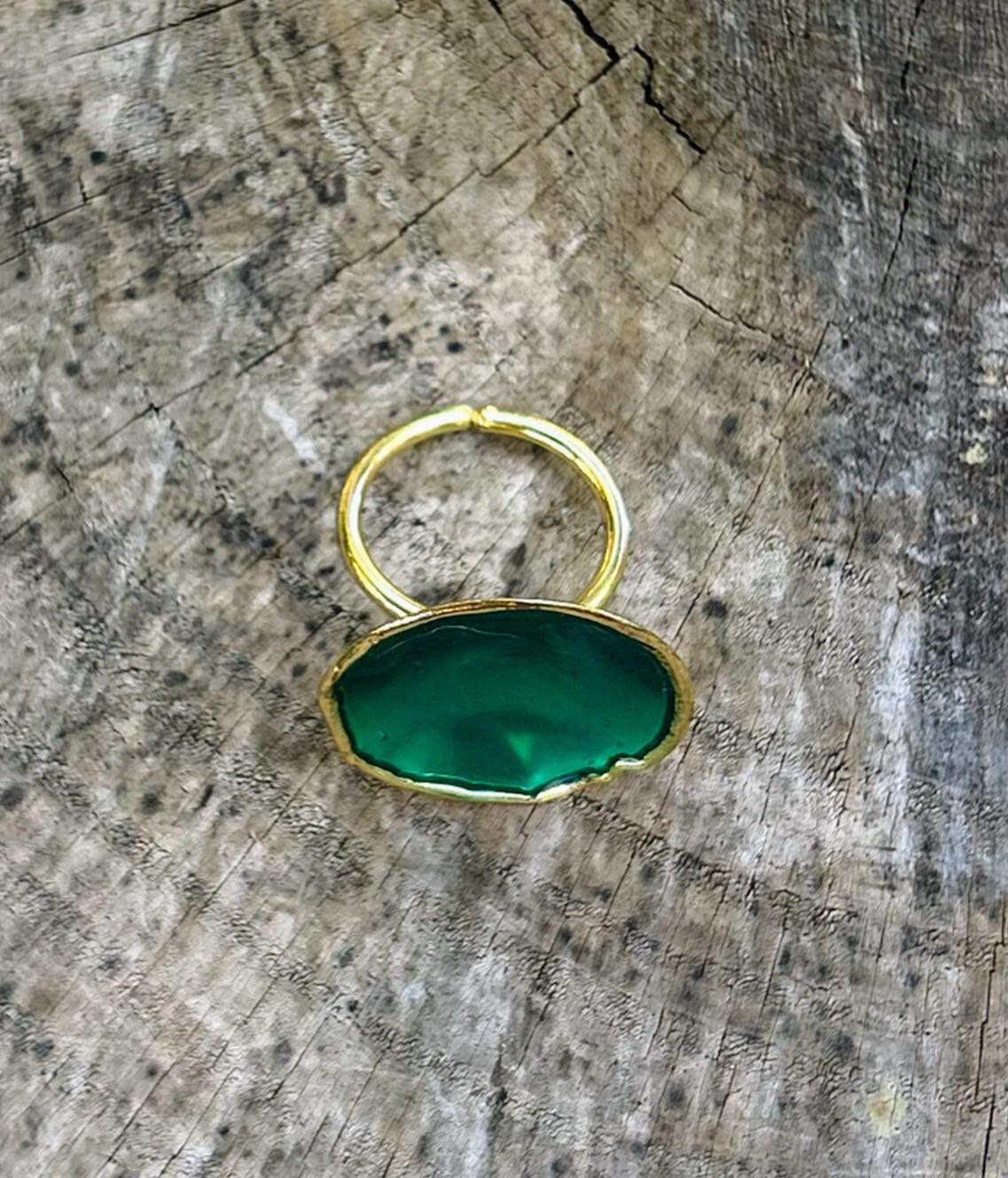 Δαχτυλίδι από μπρούντζο και πράσινο σμάλτο